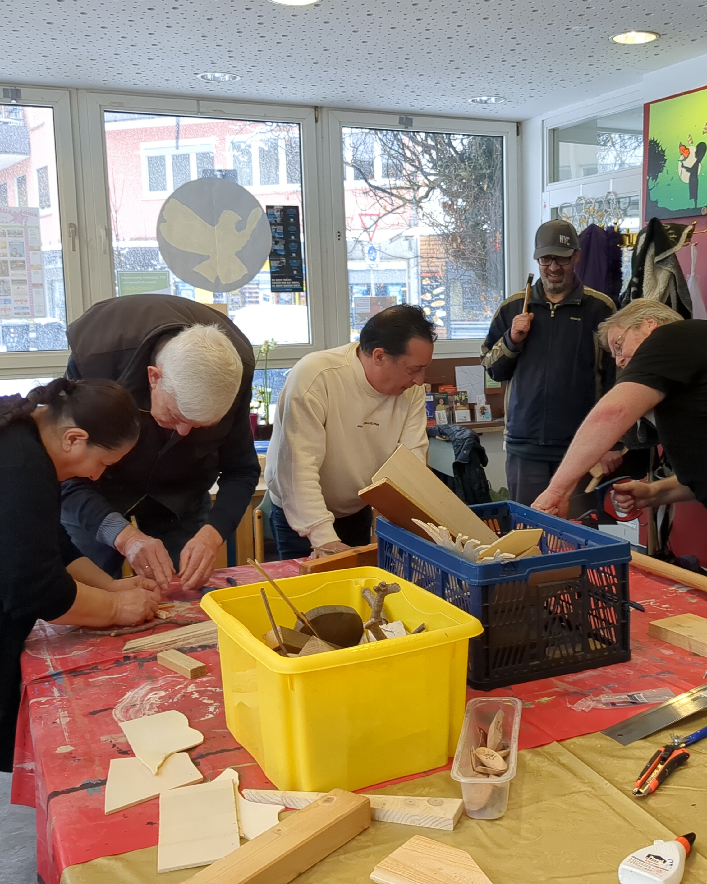 Mit der Arbeitsloseninitiative Gießen sind wir diesmal auch dabei, zeigen Skulpturen aus Holz und Ytong und bieten am Samstag ab 11 Uhr den Workshop "Holz-Kunst in Bewegung" an.